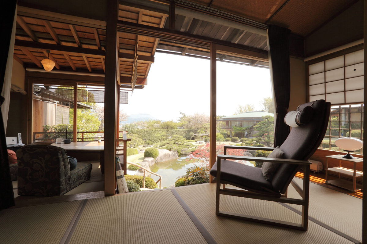 Situated near the island of Aki no Miyajima, which is generally regarded as one of the three most picturesque spots in Japan, Sekitei is an inn with much to offer. Separate guest cabins are scattered around a meticulously landscaped garden, and guests dine on fresh seafood from the Inland Sea of Japan. Hidden arbors are scattered throughout the grounds, connected via pathways made from coal-black cobblestones and lit by flickering candles at night. All these elements are layered together to create a serene, harmonious setting with its own elegant beauty.